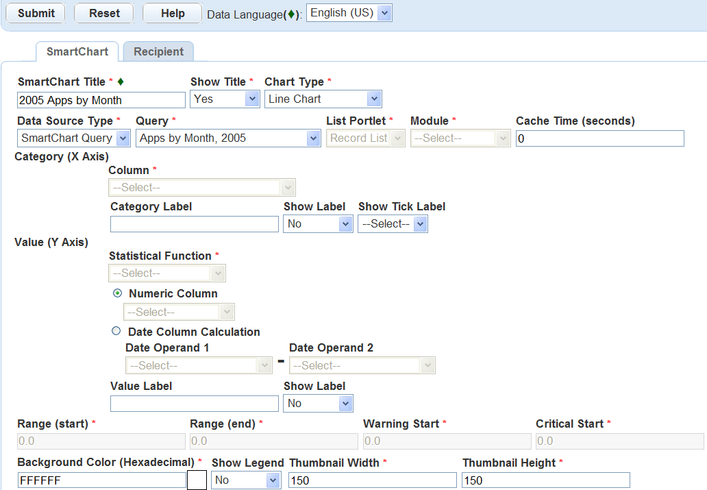 If you do not see the SmartChart you are looking for, click Search. See Creating a SmartChart Query for a list of field descriptions.