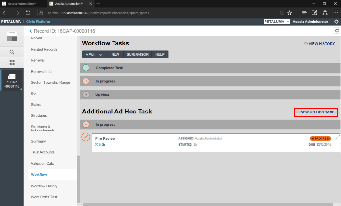 Ad Hoc tasks will be displayed in the same manner, with Completed and In Progress tasks grouped together so they can be quickly collapsed or expanded. The method for creating an Ad Hoc task is unchanged in 9.0.0+. Simply click the New Ad Hoc Task link to add it to the workflow.