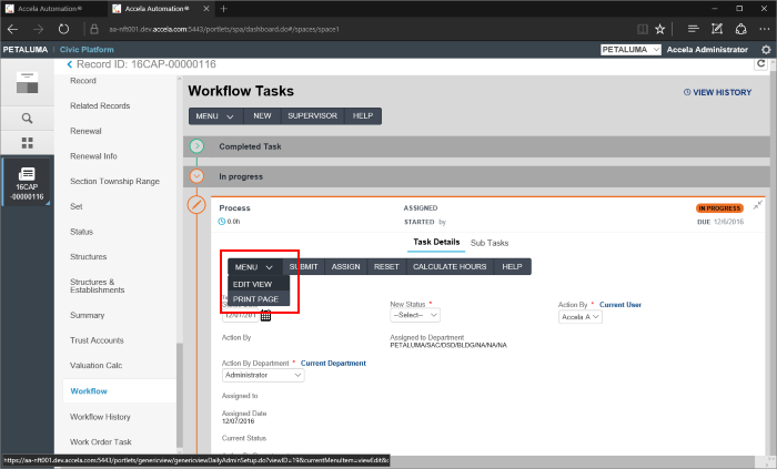 Agency Administrators can use the new Workflow Designer to easily configure individual tasks to meet the specific needs of a user group. Simply select Edit View from the Menu drop-down on the task to edit that task.