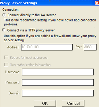 Select the connection option. If you select the “Connect via a HTTP proxy server” option, complete the fields as required.